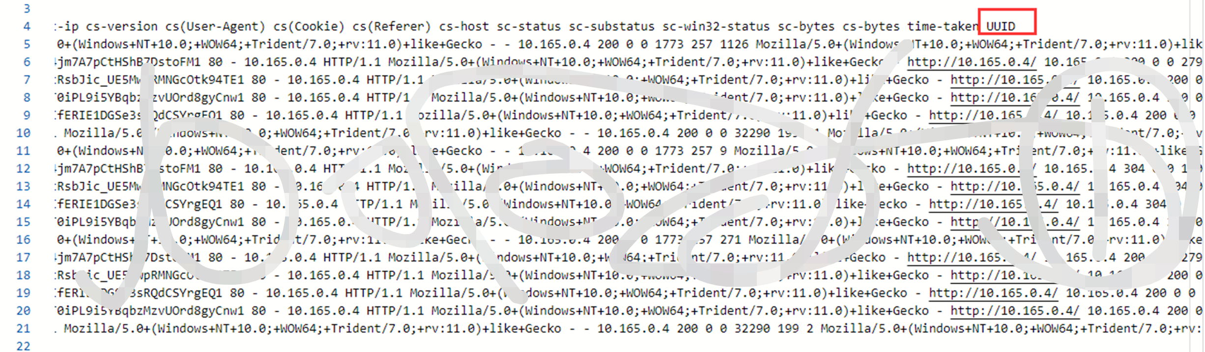 4:修改完成后,新生成的IIS日志中就会包含列名为UUID,内容为User-Agent的内容。
