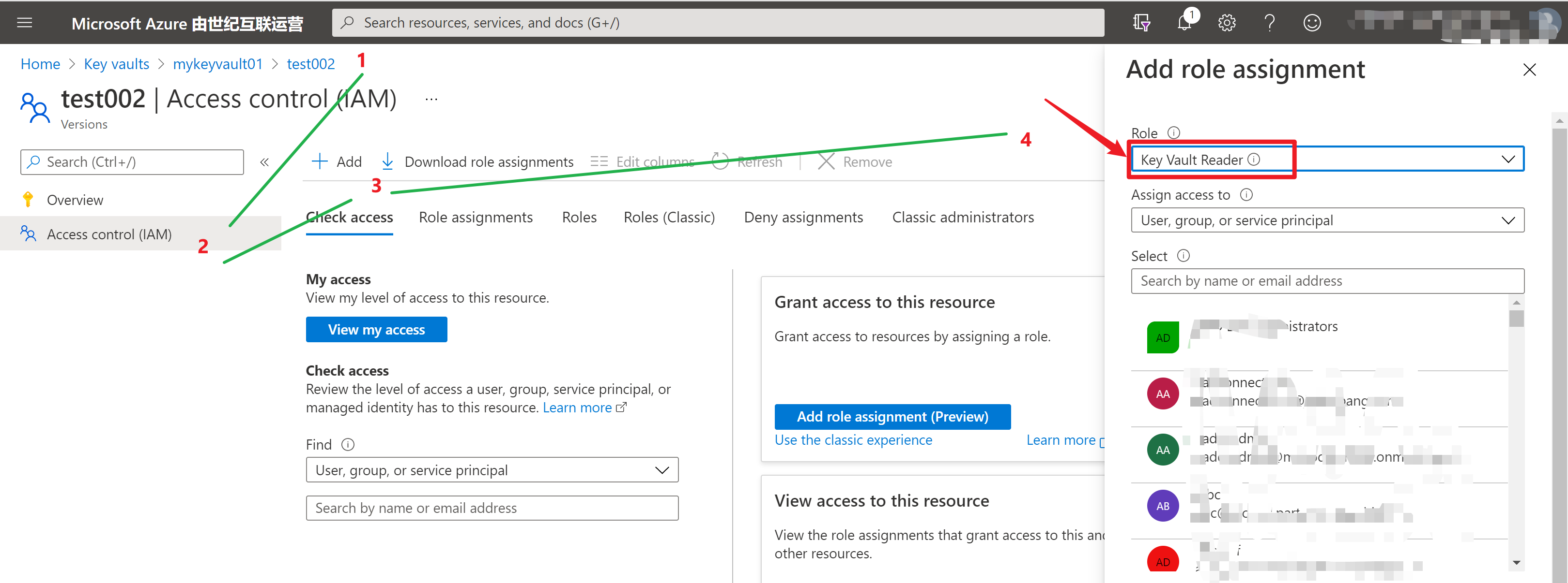 使用 Azure 门户分配 Key Vault 访问策略:https://docs.azure.cn/zh-cn/key-vault/general/assign-access-policy-portal