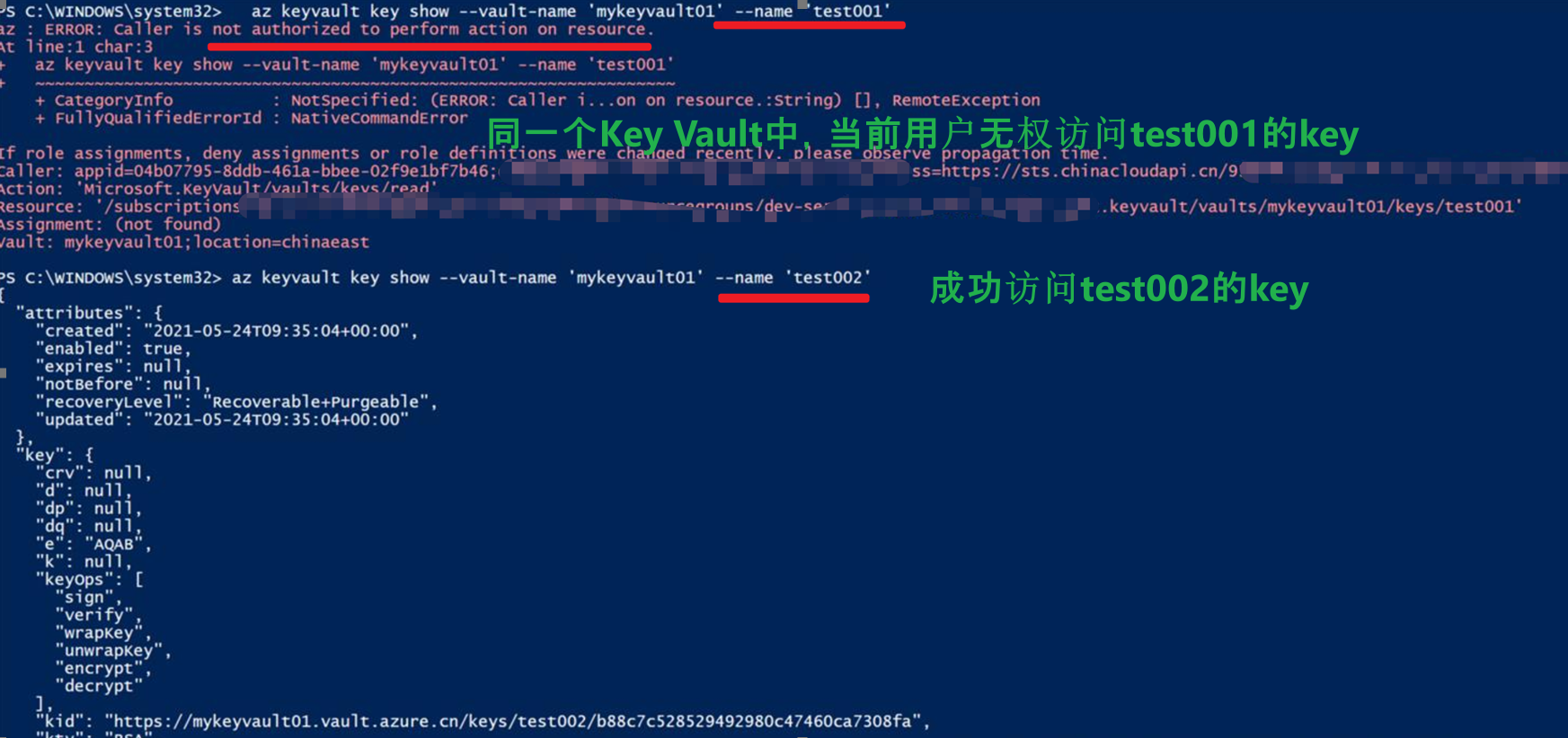 当用户访问Key Vault中的key信息时,就只能查看到单位为他赋予了读取权限的Key。
