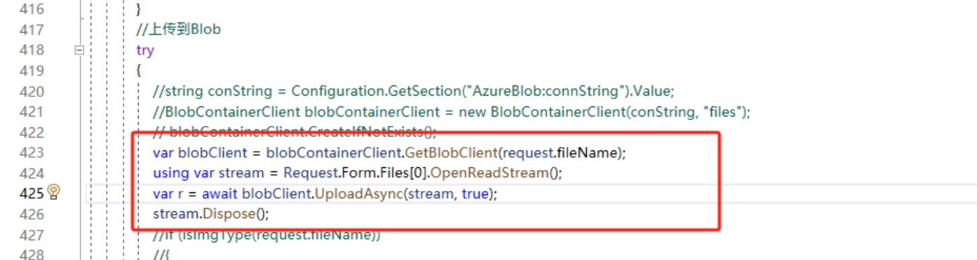 部署.NET 应用到App Service中,应用中调用Storage Account的SDK上传文件到Blob中。只是比较高频率在UploadAsync方法中遇见:OutOfMemoryException