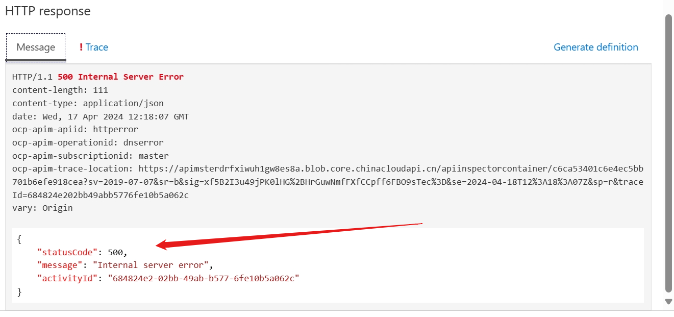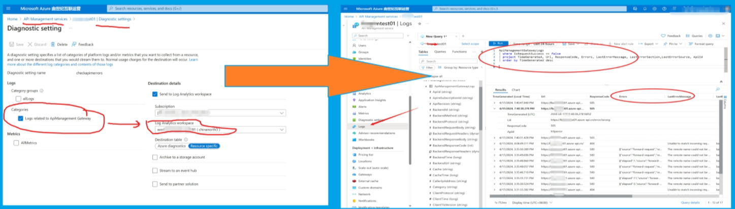 在为APIM服务配置了诊断日志(Diagnostic Setting),把日志收集在Log A Workspace中,需要验证日志中是否能查看到请求的错误信息。