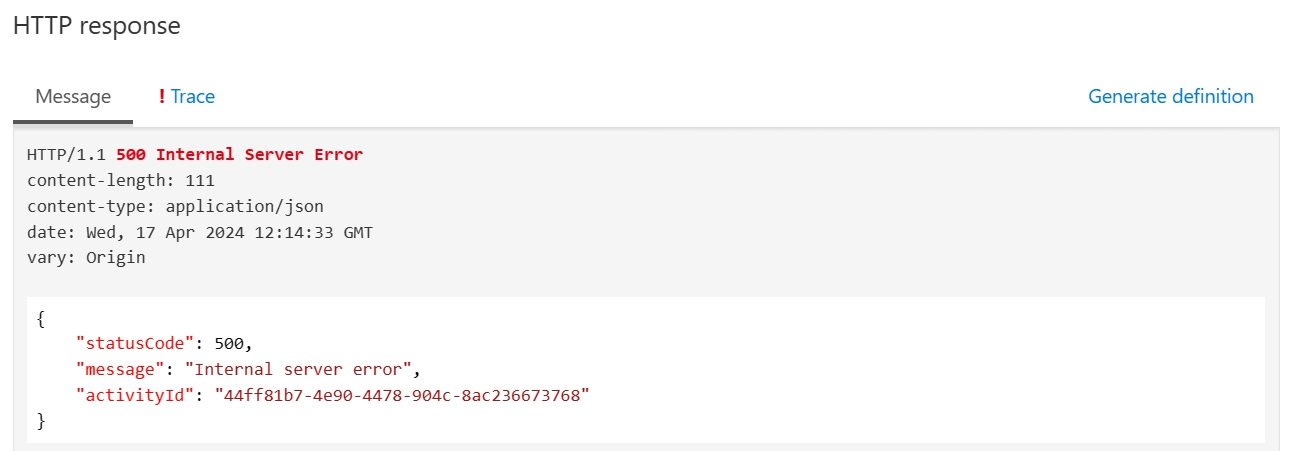 <set-variable name="Error" value="@{ throw new Exception("test n time error here :ERR_002 or n in retry policy"+DateTime.UtcNow.ToString("O")); }" />