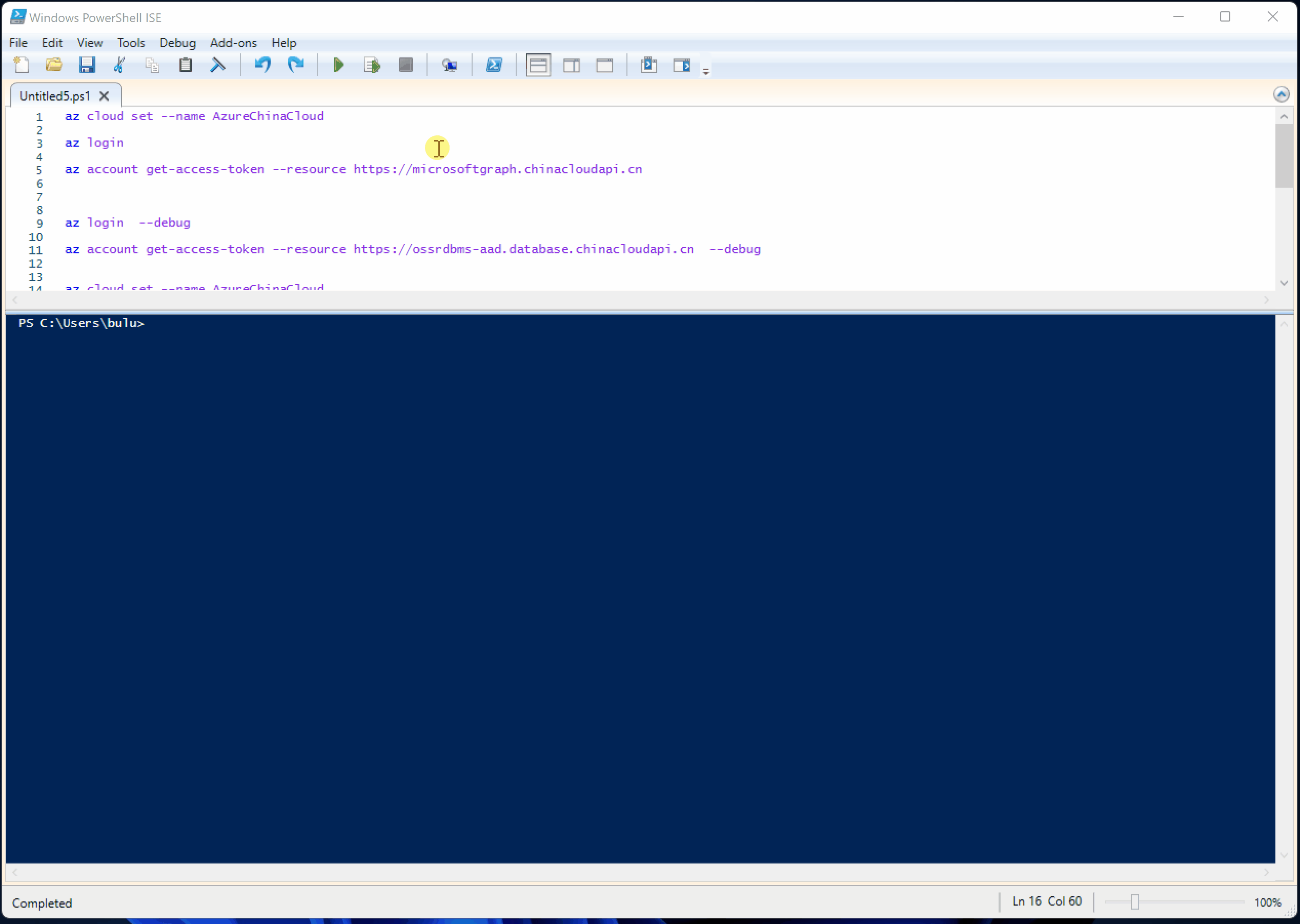 使用 az account get-access-token之前,需要设定az命令登录环境为中国区Azure