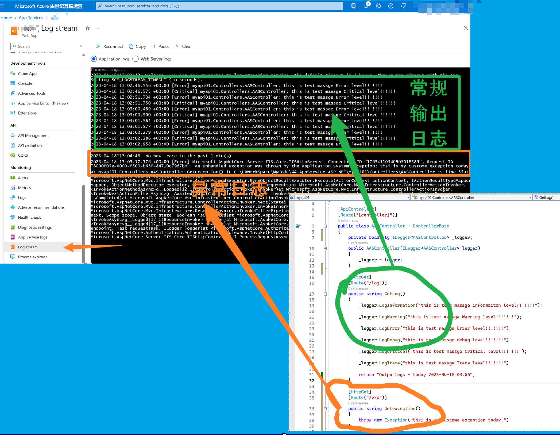 在Azure App Service的门户上 Log Stream 日志无输出,需要如何操作让其输出Application Logs呢?