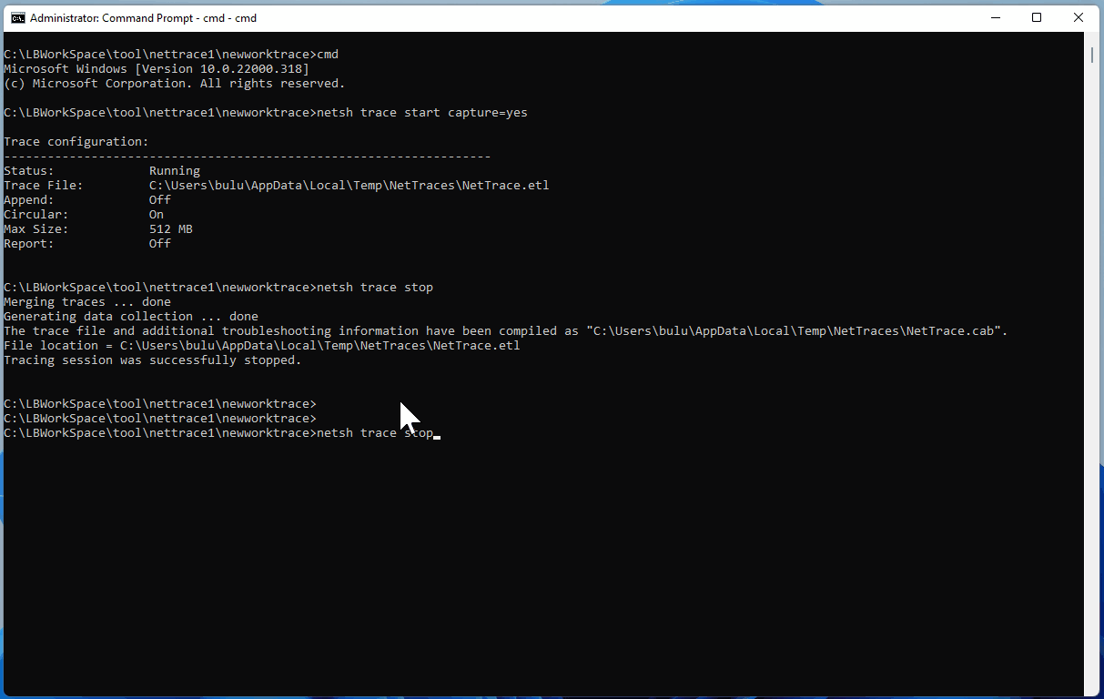 C:\LBWorkSpace\tool\nettrace1\newworktrace>netsh trace start capture=yes