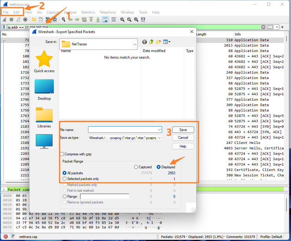 附录一:根据IP地址过滤Wireshark文件包,只导出特定的IP网络包