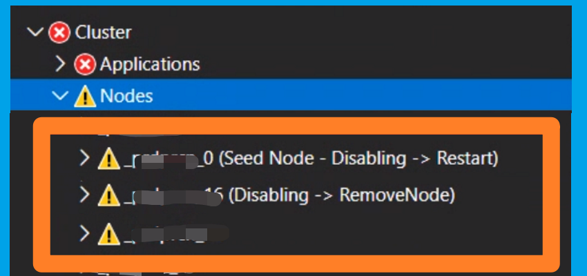 发现 Service Fabric 的节点状态异常,如出现 Disabling, Warning,或者 RemoveNode的情况,并且持续很长时间都没有变化(2小时以上)。如何来缓解这种问题呢?