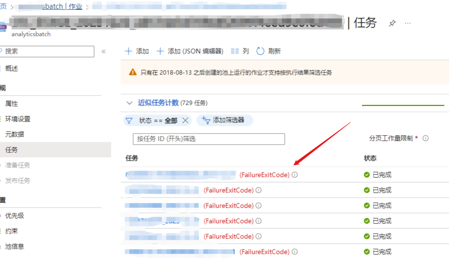 在Azure Batch Job中执行一段Python代码,遇见Failure Exit Code。