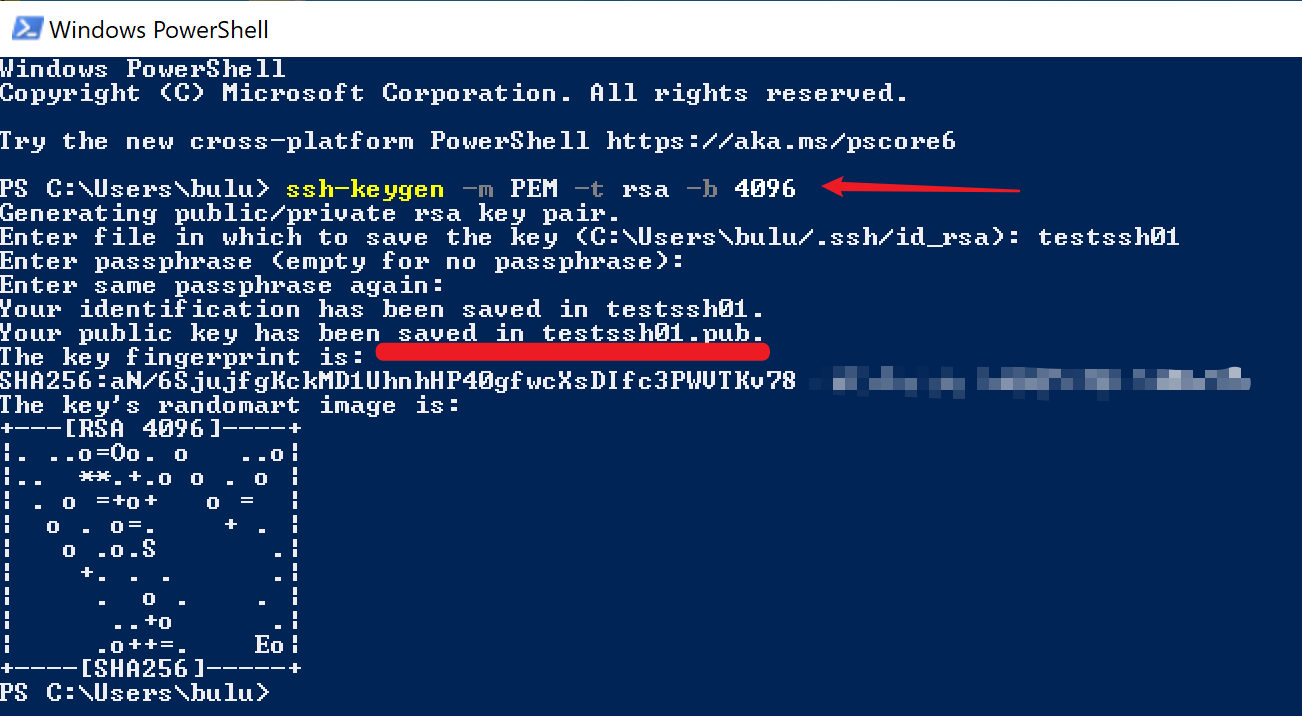 使用ssh-keygen -m PEM -t rsa -b 4096 来插件SSH公钥和私钥。 https://docs.microsoft.com/zh-cn/azure/virtual-machines/linux/ssh-from-windows#create-an-ssh-key-pair
