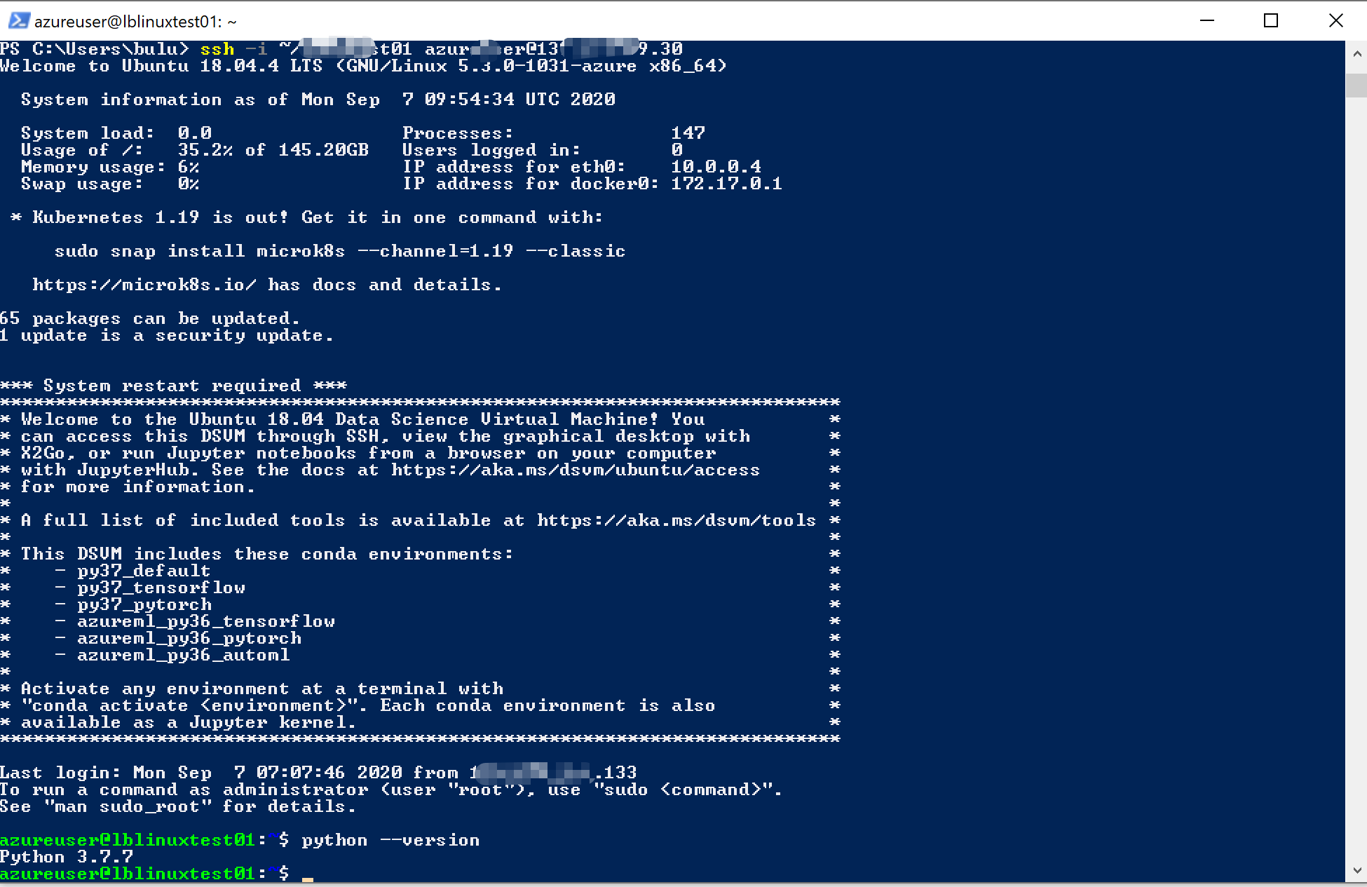 ssh -i ~/testssh01 azureuser@10.111.12.123