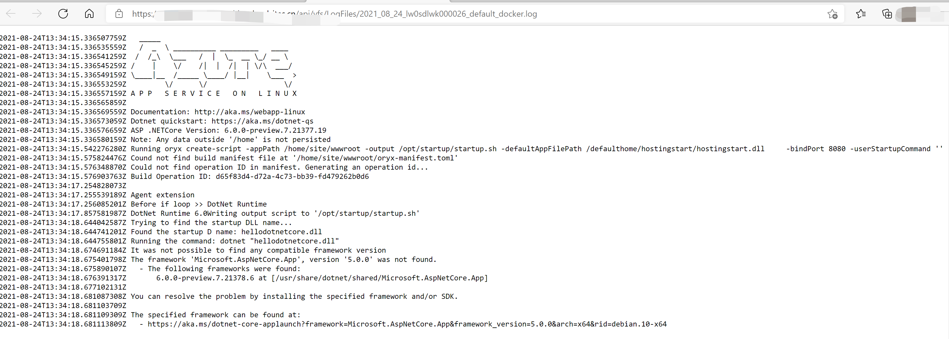 App Service 中查看Docker中运行应用的日志:
