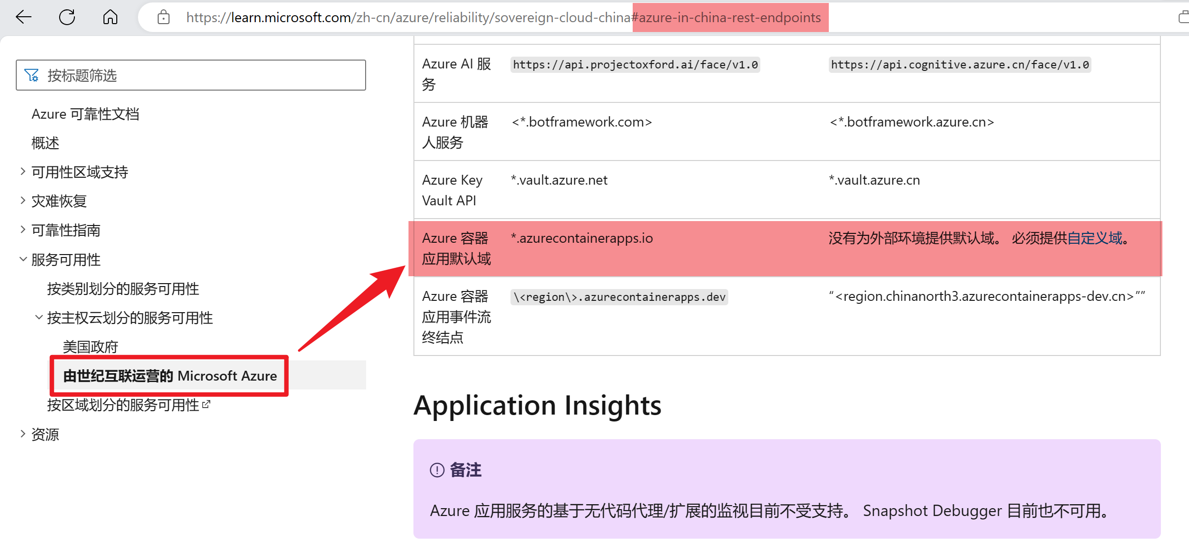 在中国区Azure上,创建Container App服务,发现默认的应用程序URL只有前半段,并不是一个完整的域名。这是什么情况呢?