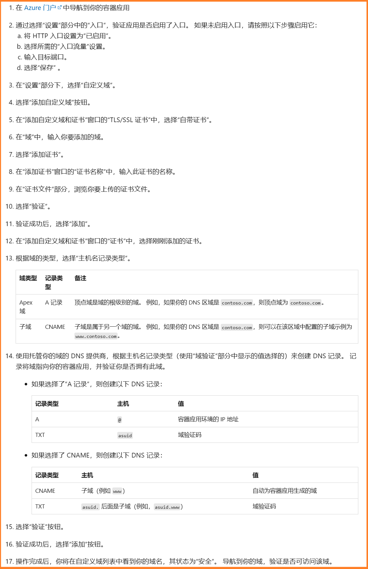 VNet 范围入口:如果计划在内部环境中使用 VNet 范围 入口 ,请通过以下方式之一配置域: