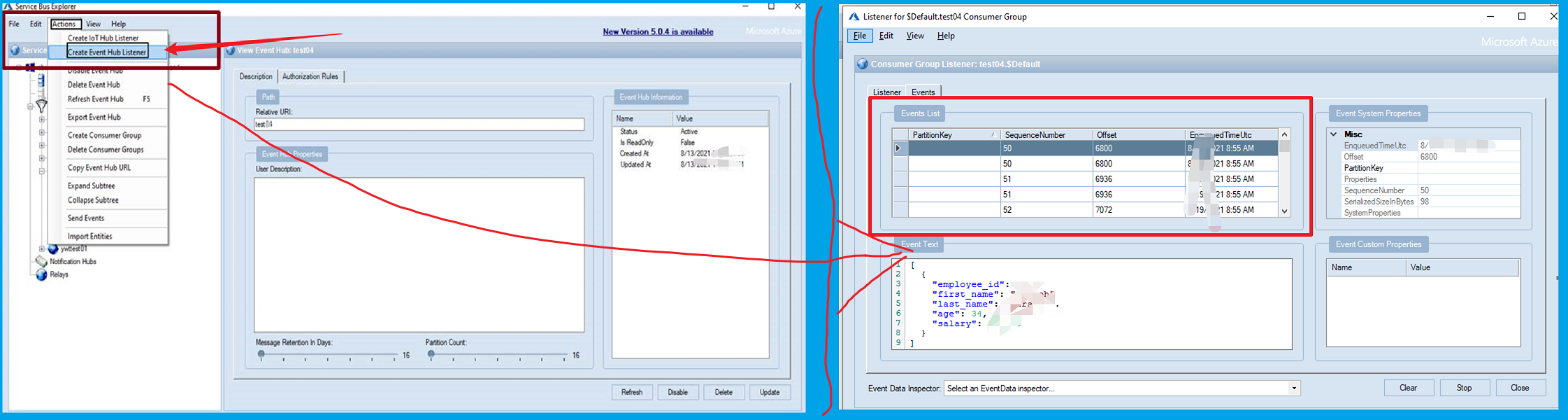 方式一:登录到Service Bus Explorer后,选择Actions --> Create Event Hub Listener