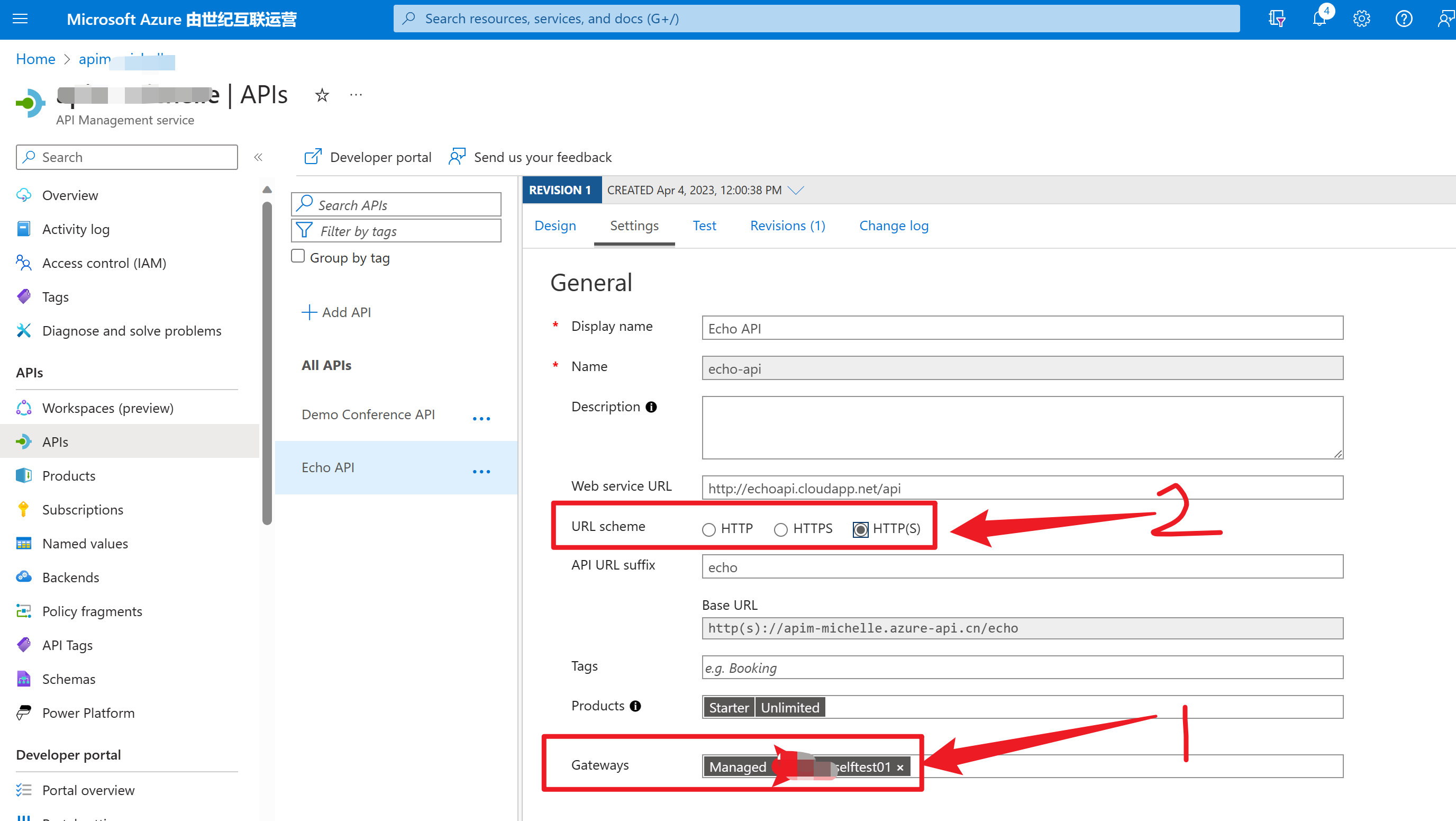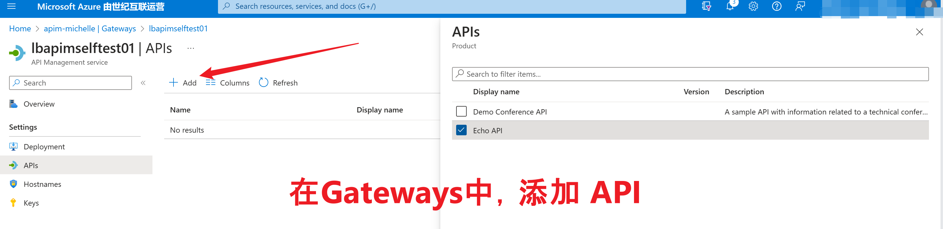 首先,需要查看APIM Self-hosted Gateway是否有关联到被访问的API,测试中所使用的是echo API。