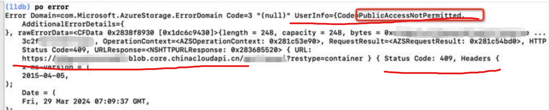iOS Objective-C 应用,连接Azure Storage Account, 根据官网Example代码,在没有关闭Storage Account的匿名访问时,程序正常运行。
