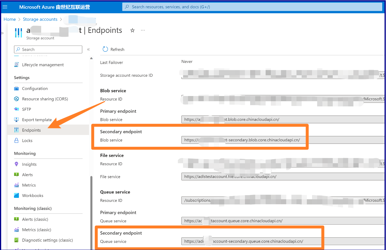 如果在创建ADLS时,使用的时RA-GRS作为冗余方式,则可以从备份的终结点读取数据。当区域性故障发生时,可以手动修改应用中读取ADLS的终结点!