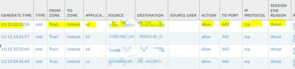 第四:查看客户端环境中是否有防火墙限制,可以查看是否有 Denied or Threat 记录