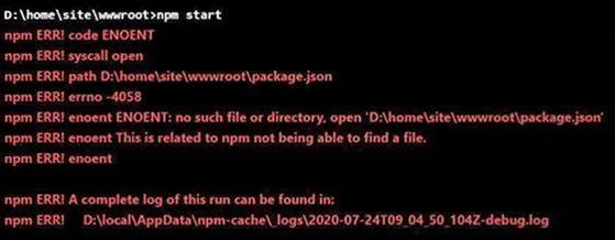 本地NodeJS应用使用Egg脚手架构建,本地运行测试完全没有问题,发布后App Service后不能运行。通过登录到kudu后(https://<your web site>.scm.chinacloudsites.cn)后,在日志中发现找不到一个文件或路径的错误。通过在kudu的CMD窗口执行npm start命令,发现错误是一致,怀疑是对Egg中某个框架的不支持。