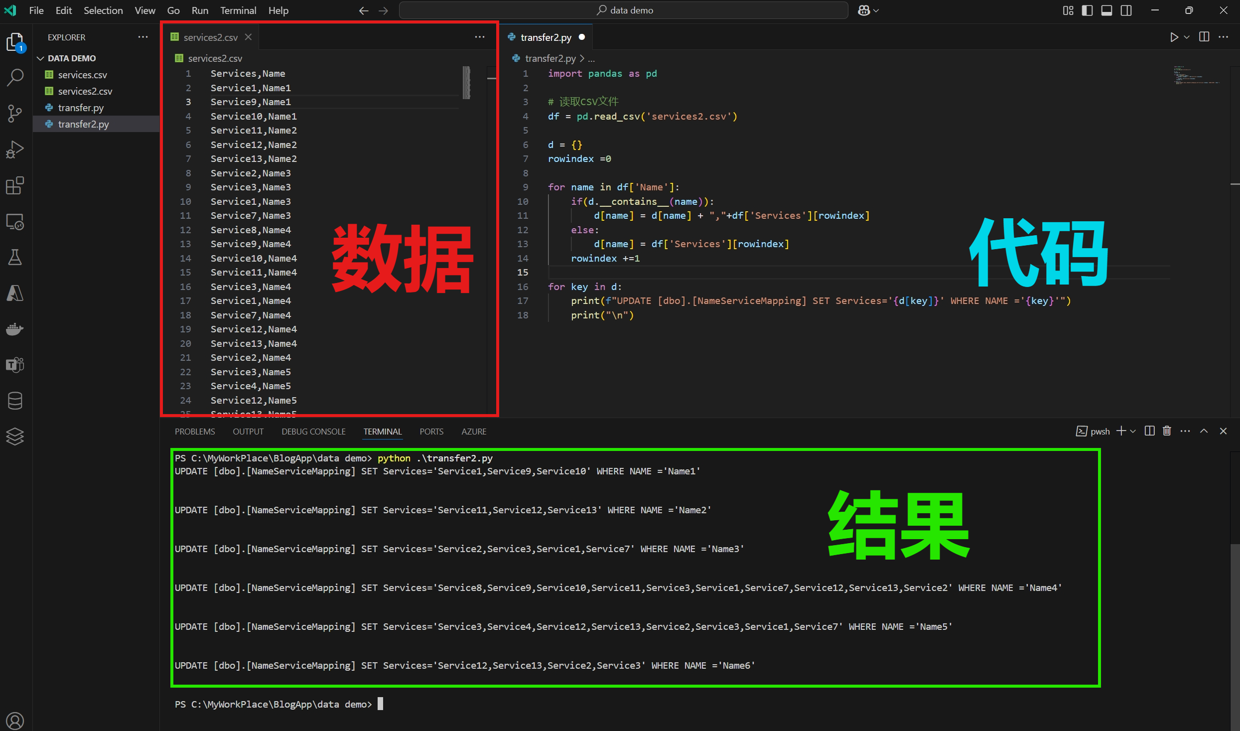 - 最后循环字典 d, 并生成 UPDATE SQL语句