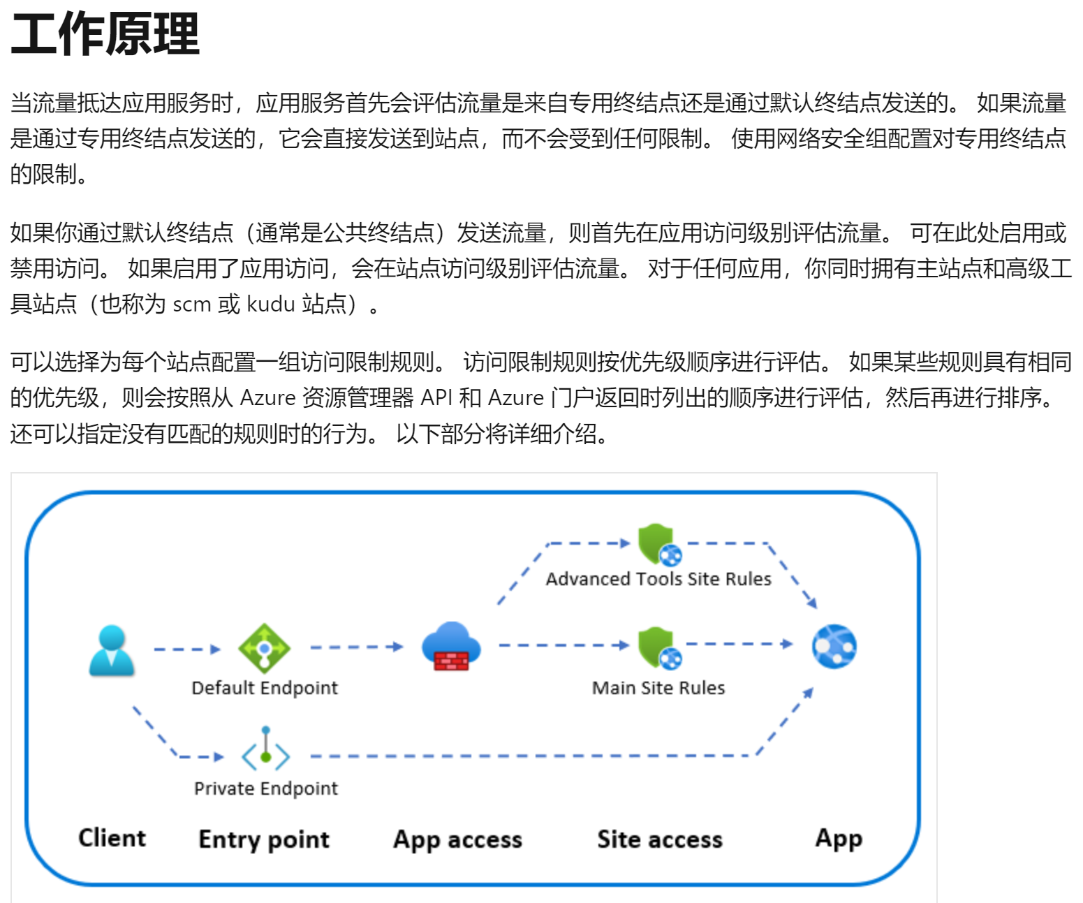 Azure 应用服务访问限制: https://docs.azure.cn/zh-cn/app-service/overview-access-restrictions#how-it-works