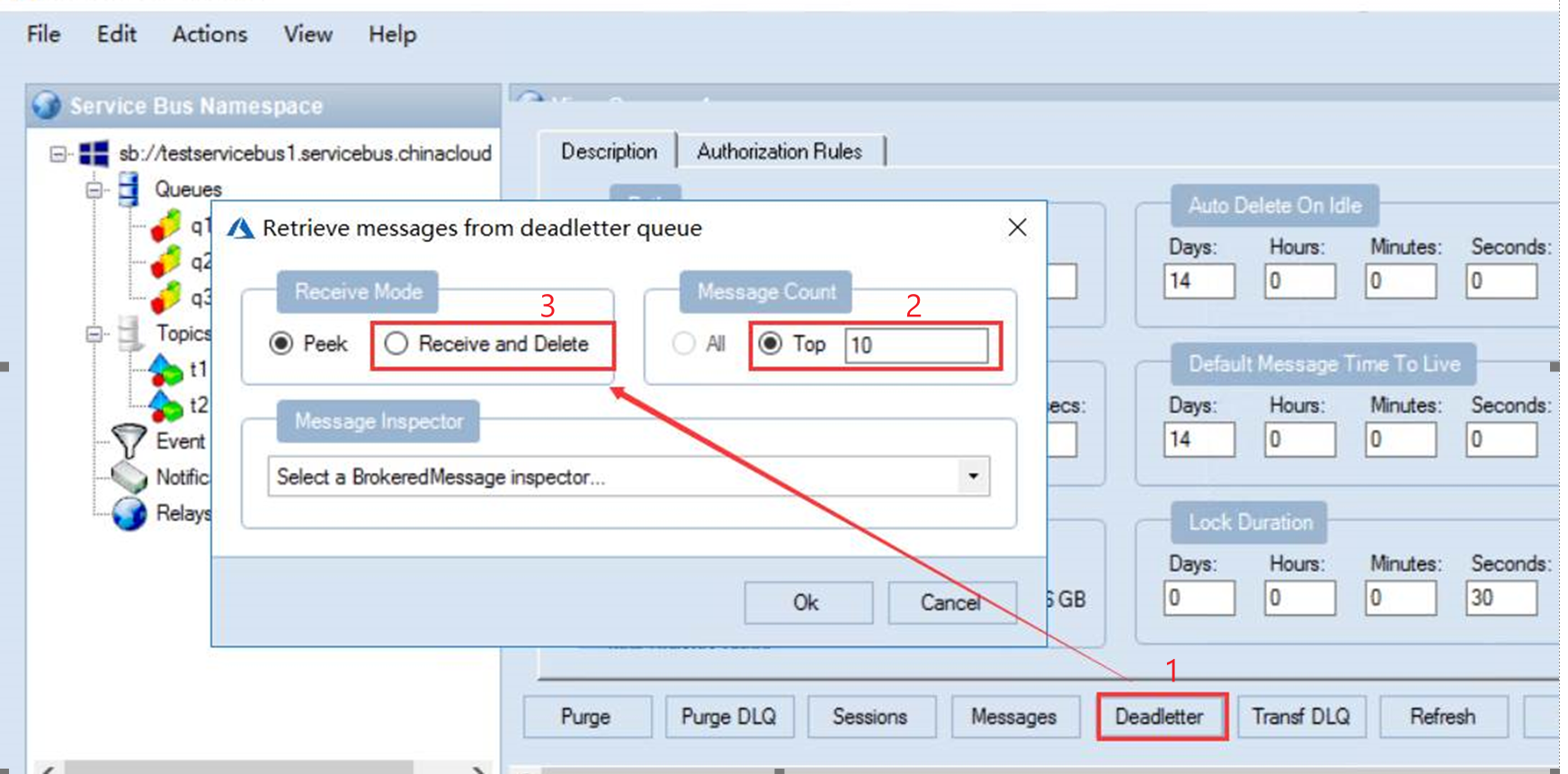 2) 连接到Service Bus中并查看死信消息