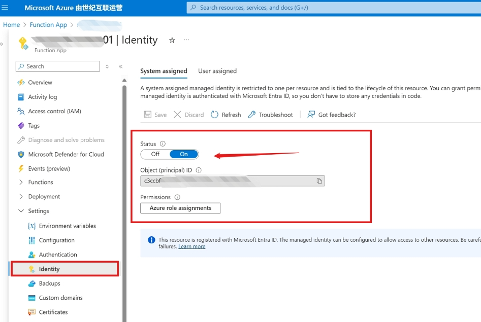 在Azure Function中,如何使用托管身份(Managed Identity) 而不是 AzureWebJobsStorage 来连接函数应用到存储账户?