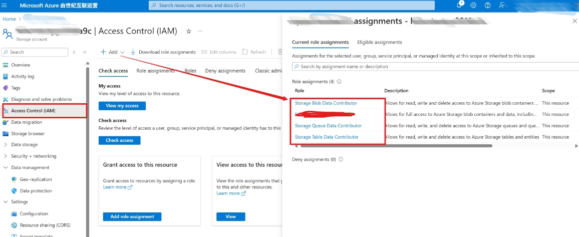 如果配置了 blob 触发的函数应用,重复步第二步。添加 Storage Queue Data Contributor 和 Storage Table Data Contributor 角色,这些角色将用于 Funtcion 的触发。