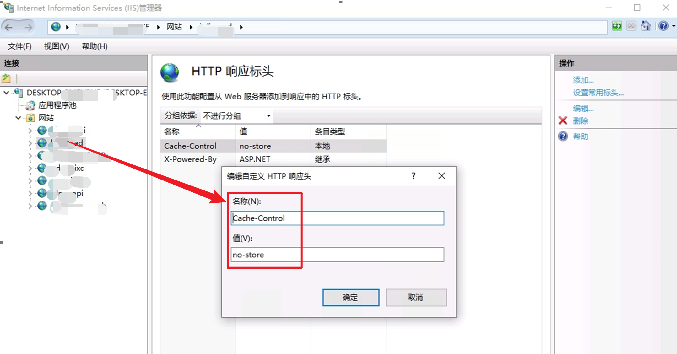 效果类似于本地IIS中设置IIS响应标头