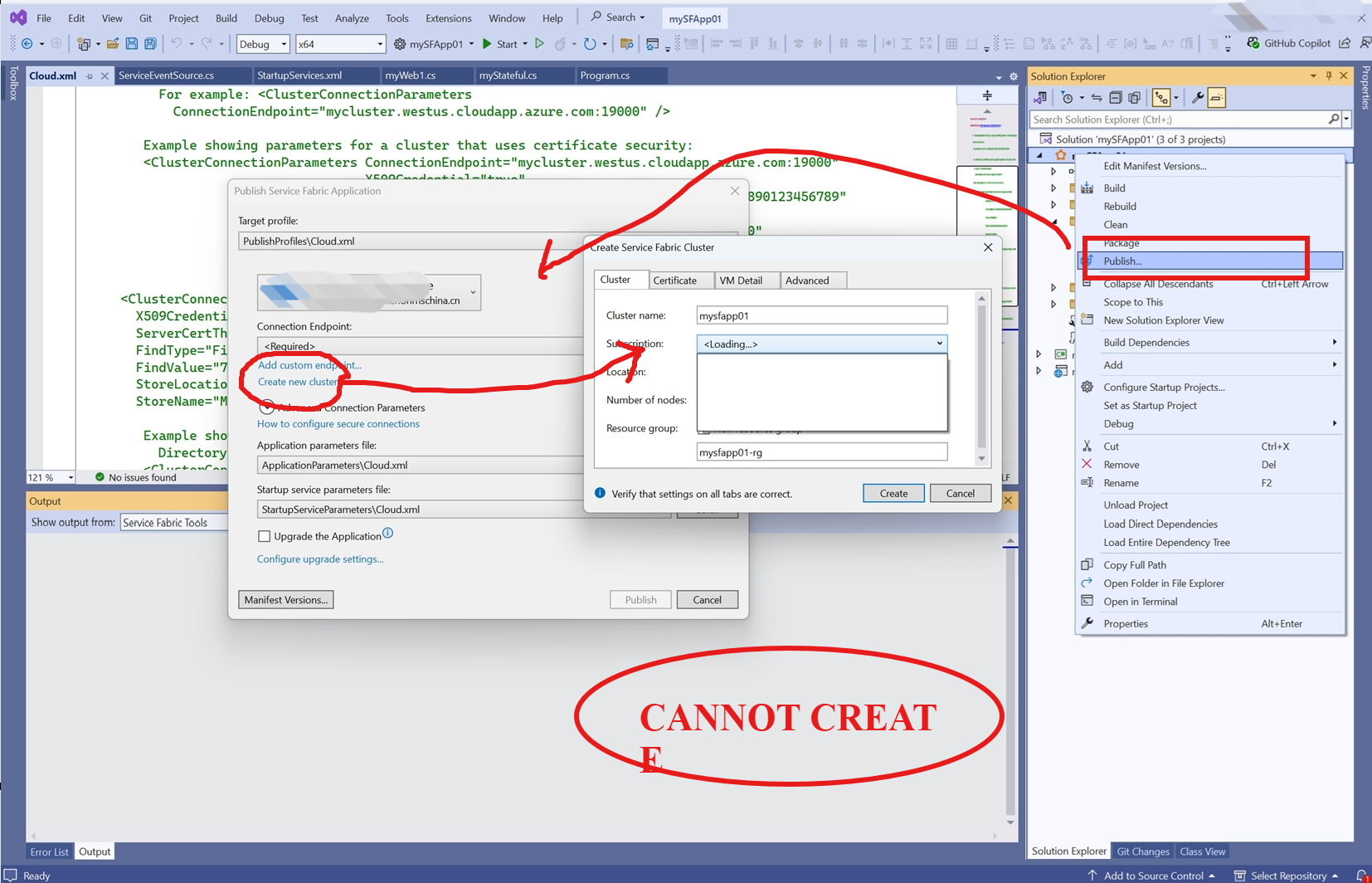 使用Visual Studio 2022如何发布Service Fabric到中国区云服务呢? 因为使用VS2022中的插件无法创建Service Fabric Cluster服务。