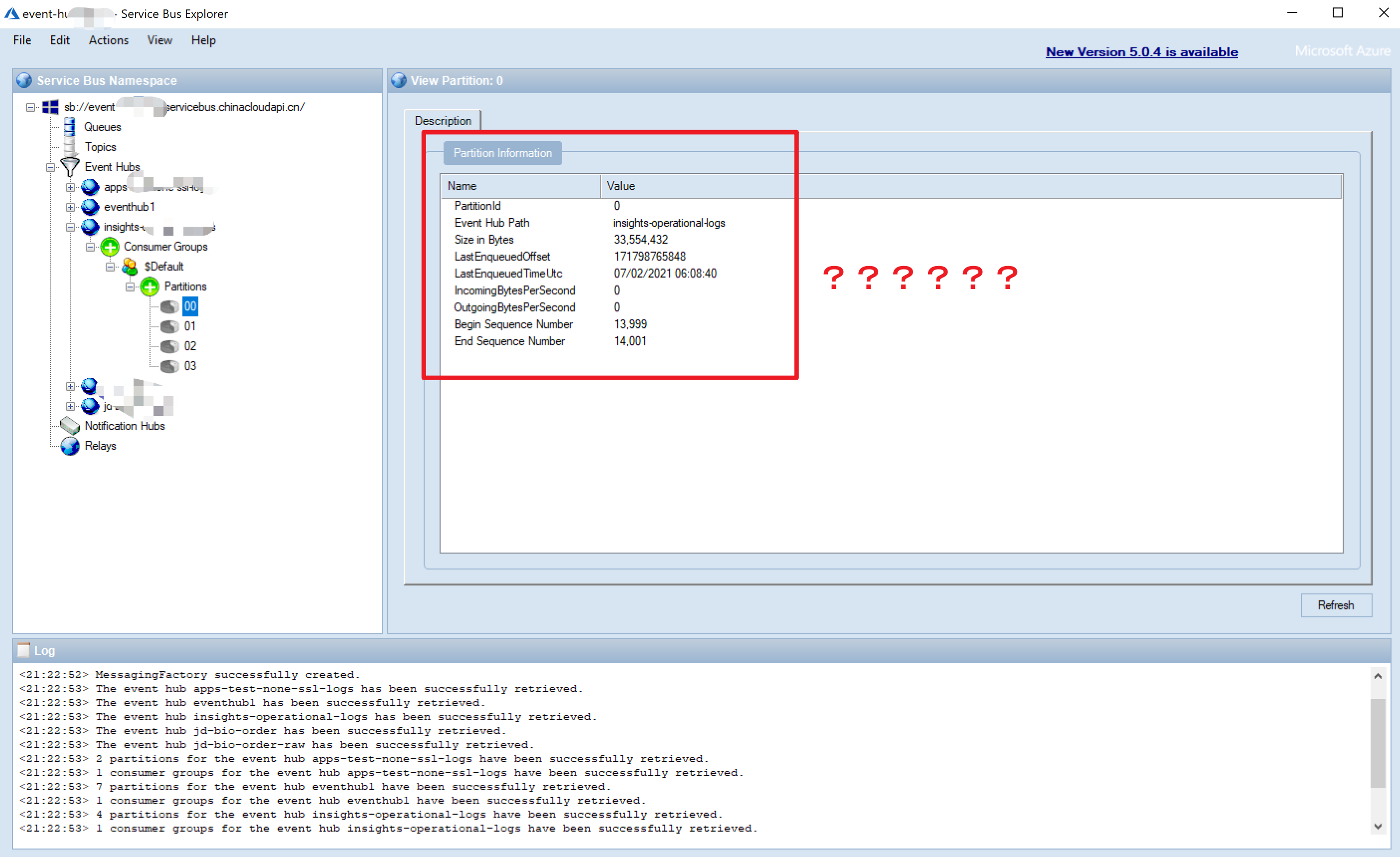 通过Service Bus Explorer工具,查看到Event Hub的属性值,从而产生的问题及讨论:
