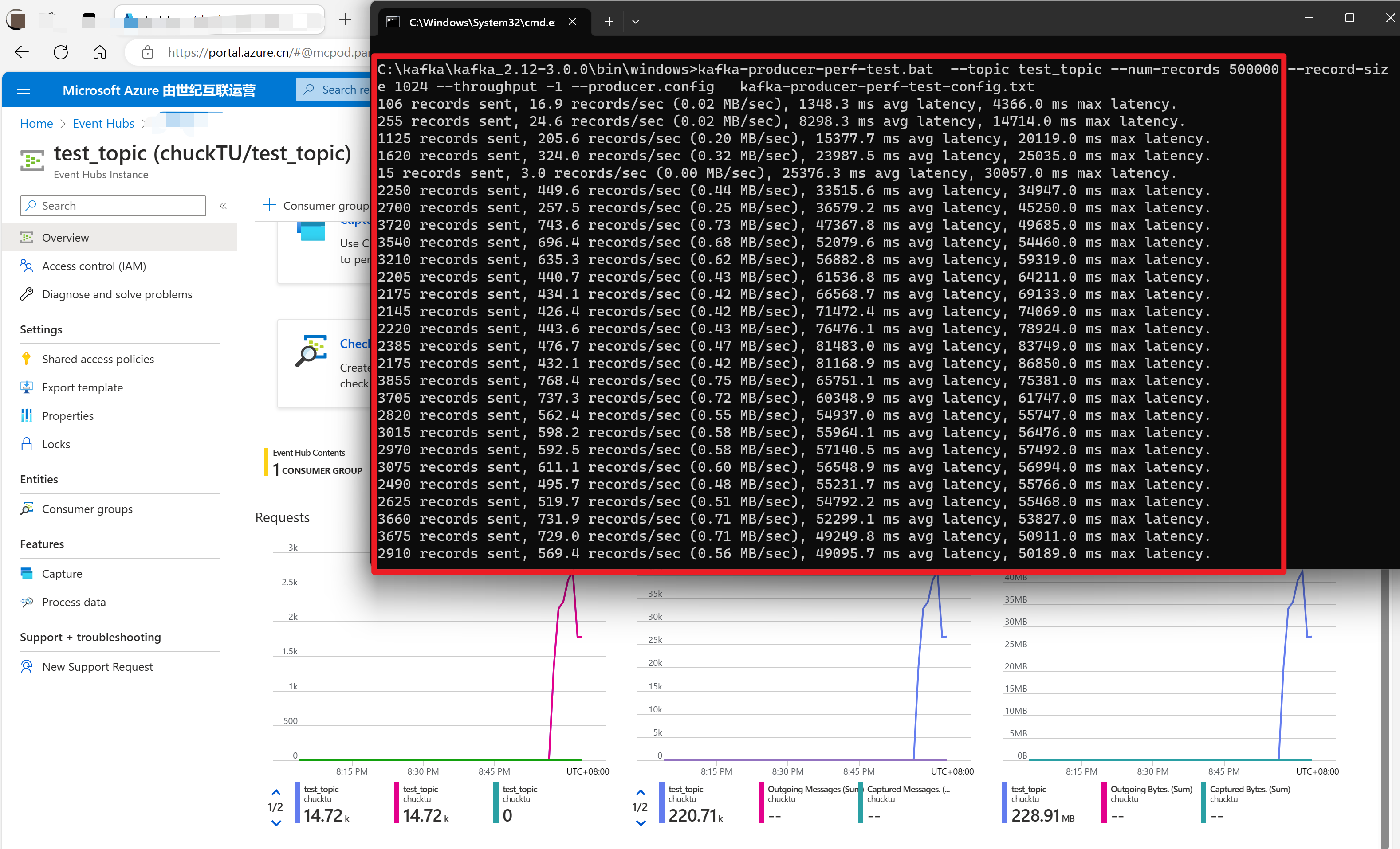 Azure Event Hub支持 kafka,所以为了测试消息生产者所在环境与Azure Event Hub之间发送消息的性能如何,特别使用 kafka 官方测试生产者,消费者的性能工具 :