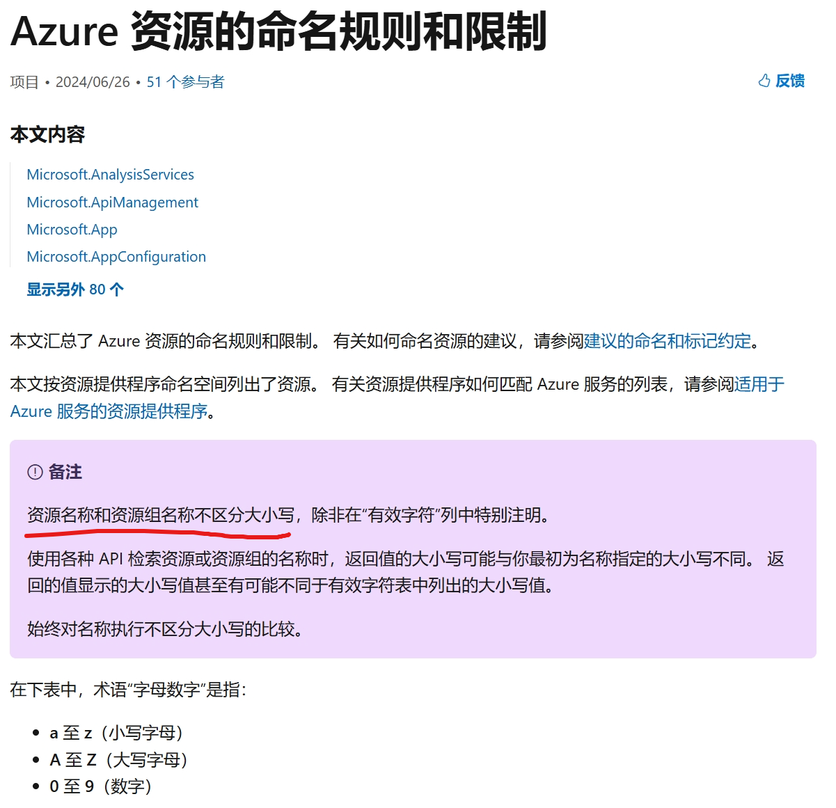 其实,如果查看Azure的官方文档,它标明了Azure资源是不区分大小写的,也就是说:不论大写/小写,都是支持的。