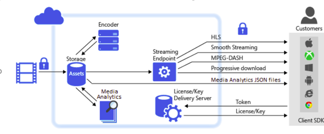 如Azure Media Player 点播的过程和结构图如下: