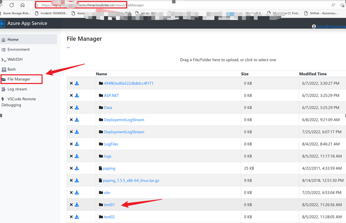 新kudu的URL为:https://<your app service name>.scm.chinacloudsites.cn/newui