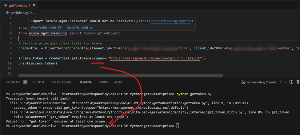 access_token = credential.get_token(scopes=["https://management.chinacloudapi.cn/.default"])