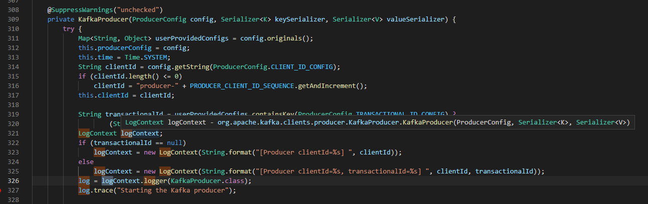 Azure Event Hub 在标准版以上就默认启用的Kafka终结点,所以可以通过Apache Kafka协议连接到Event Hub进行消息的生产和消费。通过示例代码下载到本地运行后,发现没有 Kafka Producer 的详细日志输出。当查看SDK源码中,发现使用的是 org.slf4j.Logger 输出日志,如:
