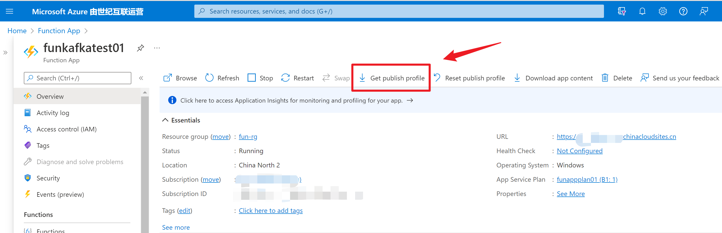 首先:在Azure中创建好一个Function App,在Function App Overview页面下载Publish Profile文件