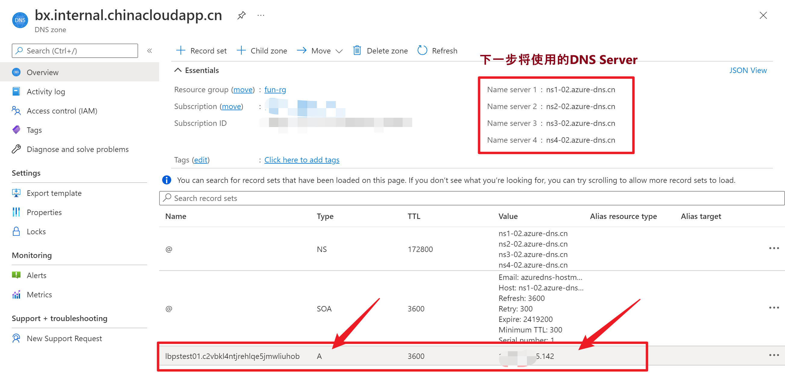 第一步: 以 bx.internal.chinacloudapp.cn为 自定义域创建DNS Zone