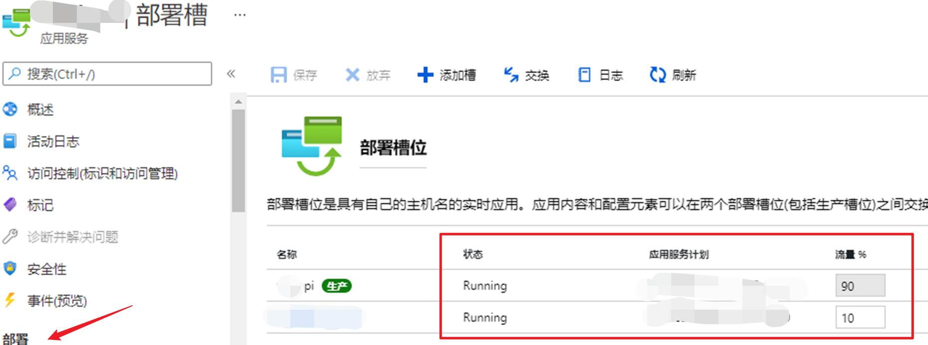 进一步检查App Service 槽的部署情况,果然,发现两个槽之间的流量分布为90%, 10%。进一步的解释了从客户端调用WCF服务时候出现的10次之间一次出现401的问题。 通过修改部署槽之间的流量,问题完美解决。