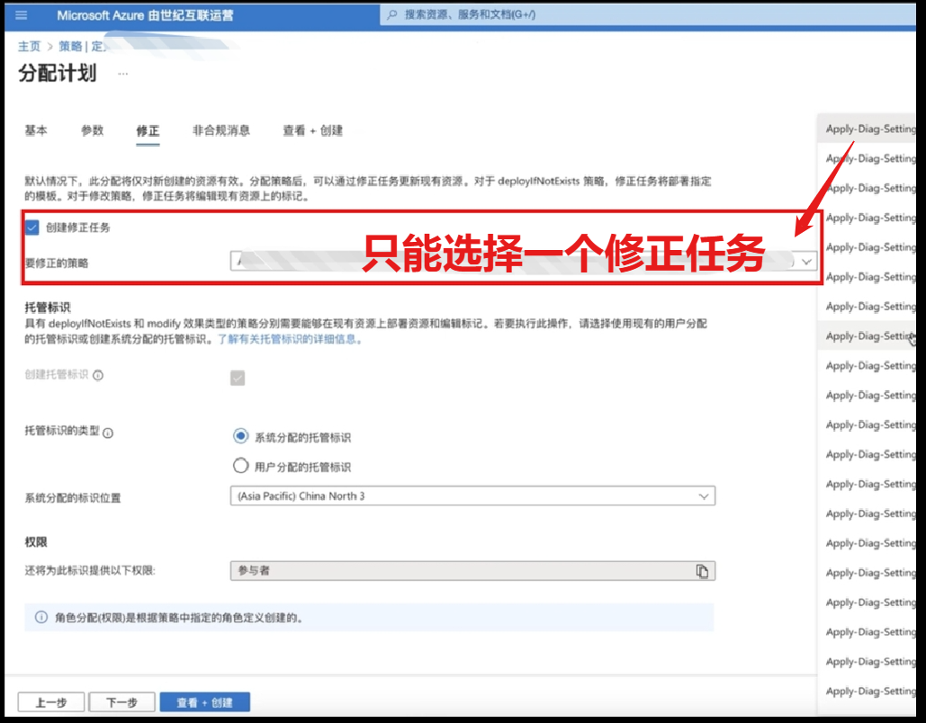从Azure门户的设计来看,只能选择一个修正任务是设计使然。如果想批量执行全部的修正任务,需要使用PowerShell脚本来循环执行。