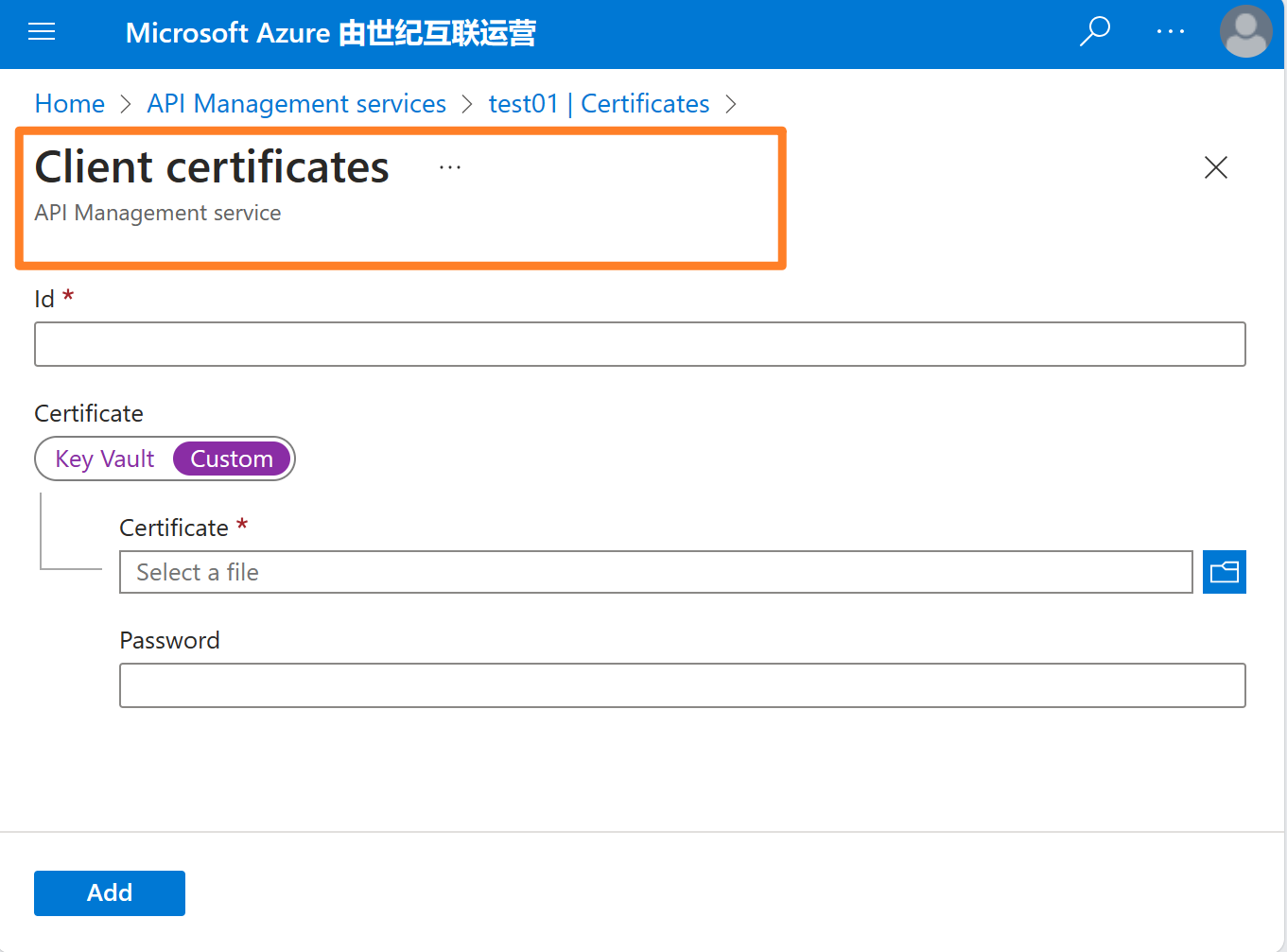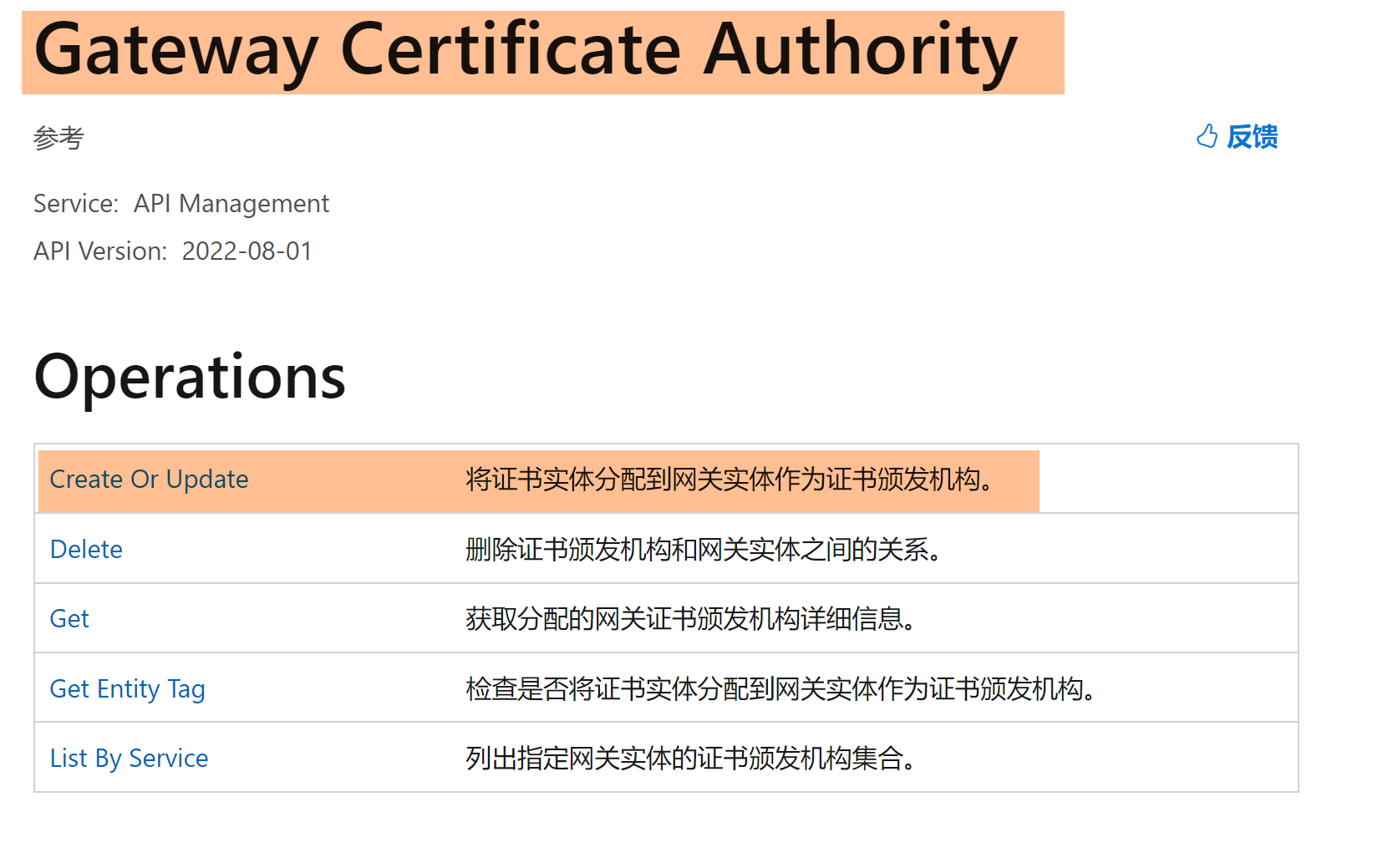 如果使用Self-host网关,则不支持使用上传到 APIM的 CA 根证书验证服务器和客户端证书。 若要建立信任,请配置特定的客户端证书,使其被网关作为一个自定义的证书颁发机构所信任,使用网关APIM REST API 为自承载网关创建和更新证书。