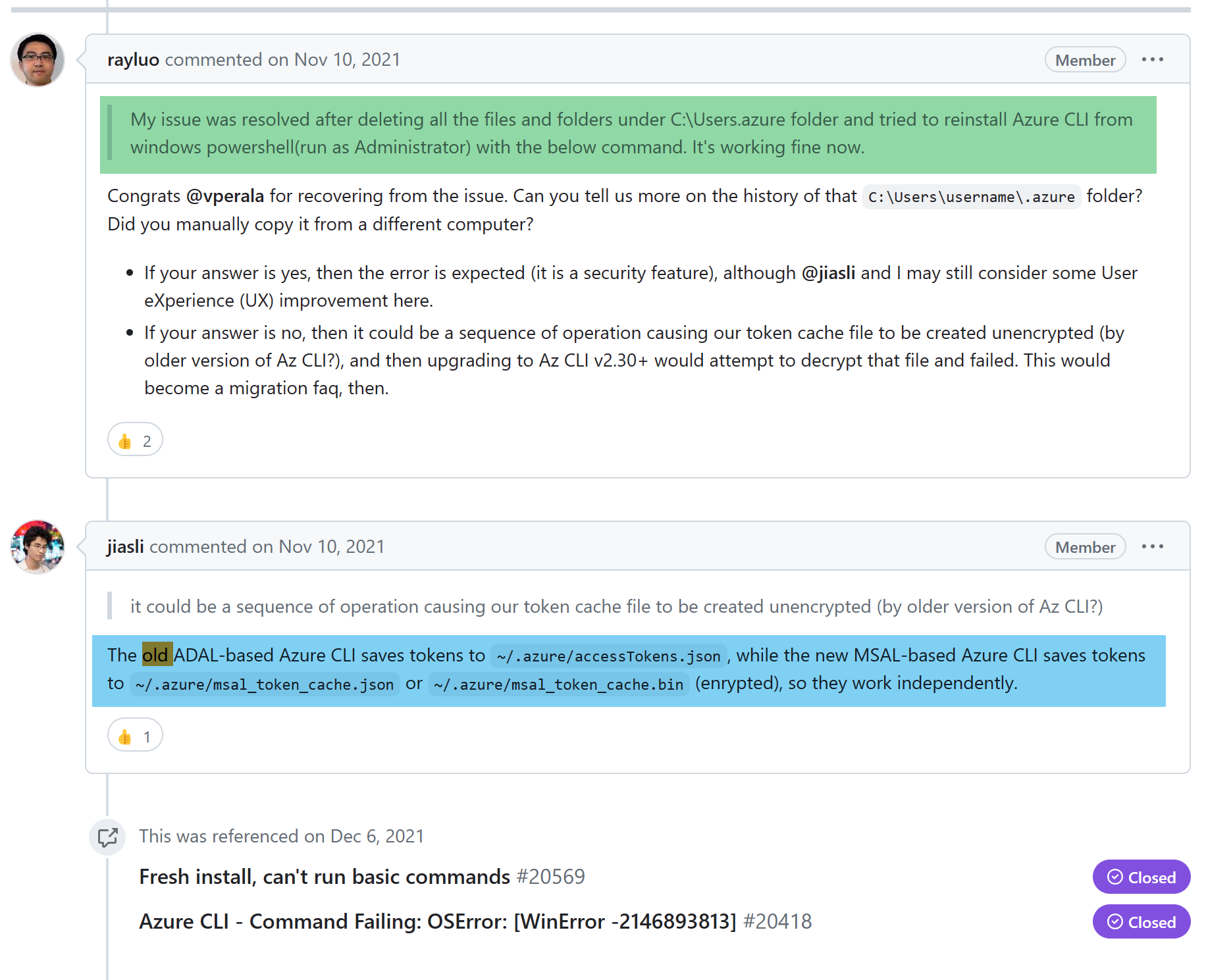 可能是之前该机器中安装过旧 az cli ,它是基于ADAL做登录验证的。而新版的az cli使用的是MSAL,可能是一些历史文件存留在 C:\Users<username>.azure 文件夹下。 引起了格式错乱问题。