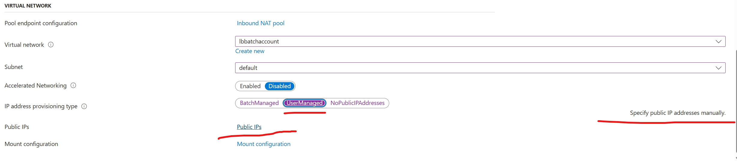 参考文档:创建具有指定公共 IP 地址的 Azure Batch 池