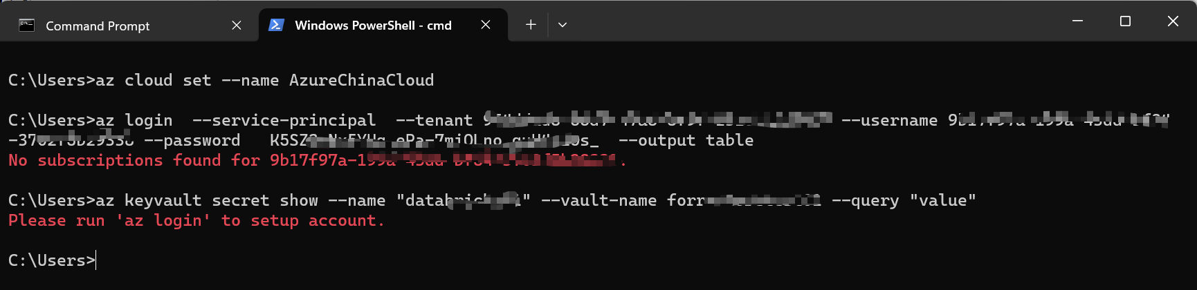 在使用Azure Key Vault的过程中,遇见无法获取机密信息,在不方便直接写代码的情况下,快速使用Azure CLI指令来验证当前使用的认证是否可以获取到正确的机密值。