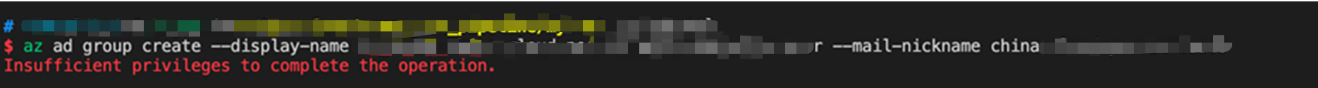 使用China Azure,通过Azure CLI 创建AAD组报错,提示权限不足 Insufficient privileges to complete the operation