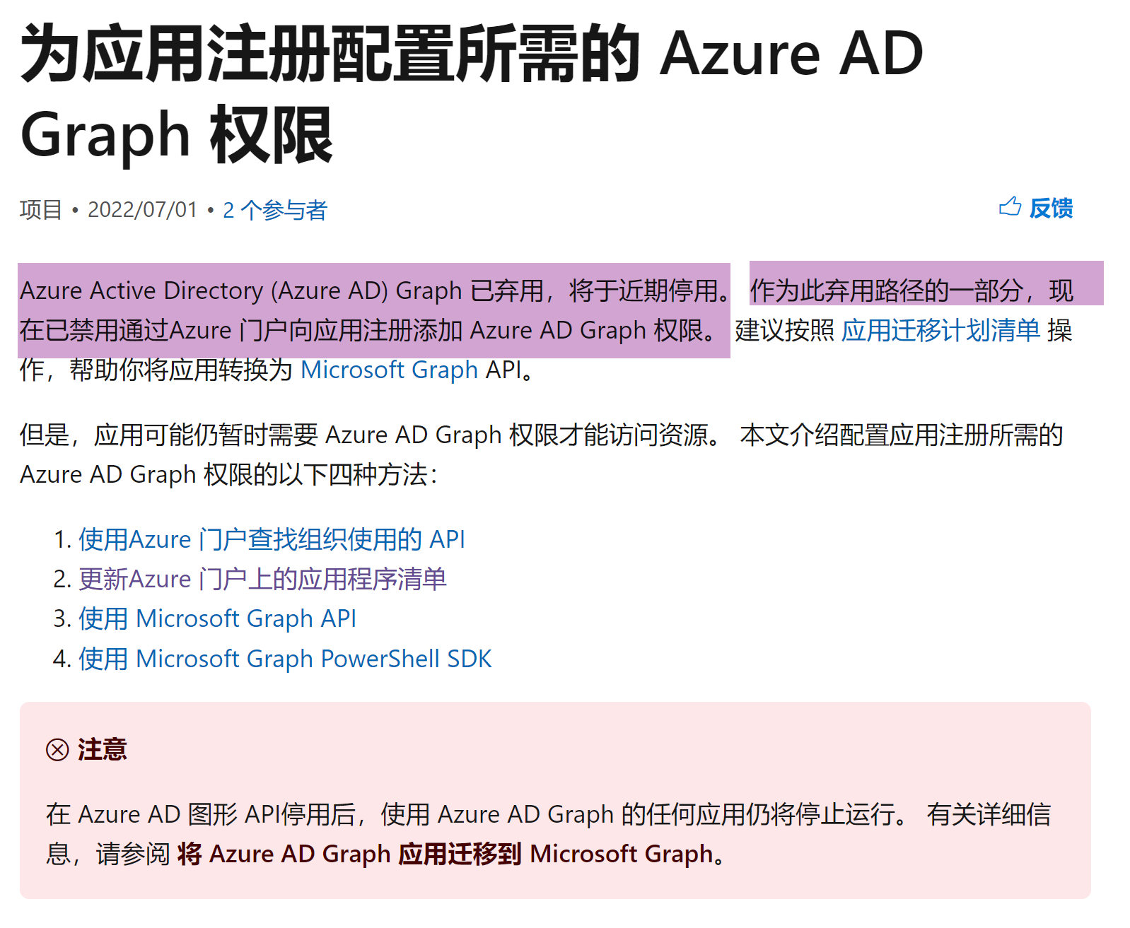 为应用注册配置所需的 Azure AD Graph 权限:https://learn.microsoft.com/zh-cn/graph/migrate-azure-ad-graph-configure-permissions