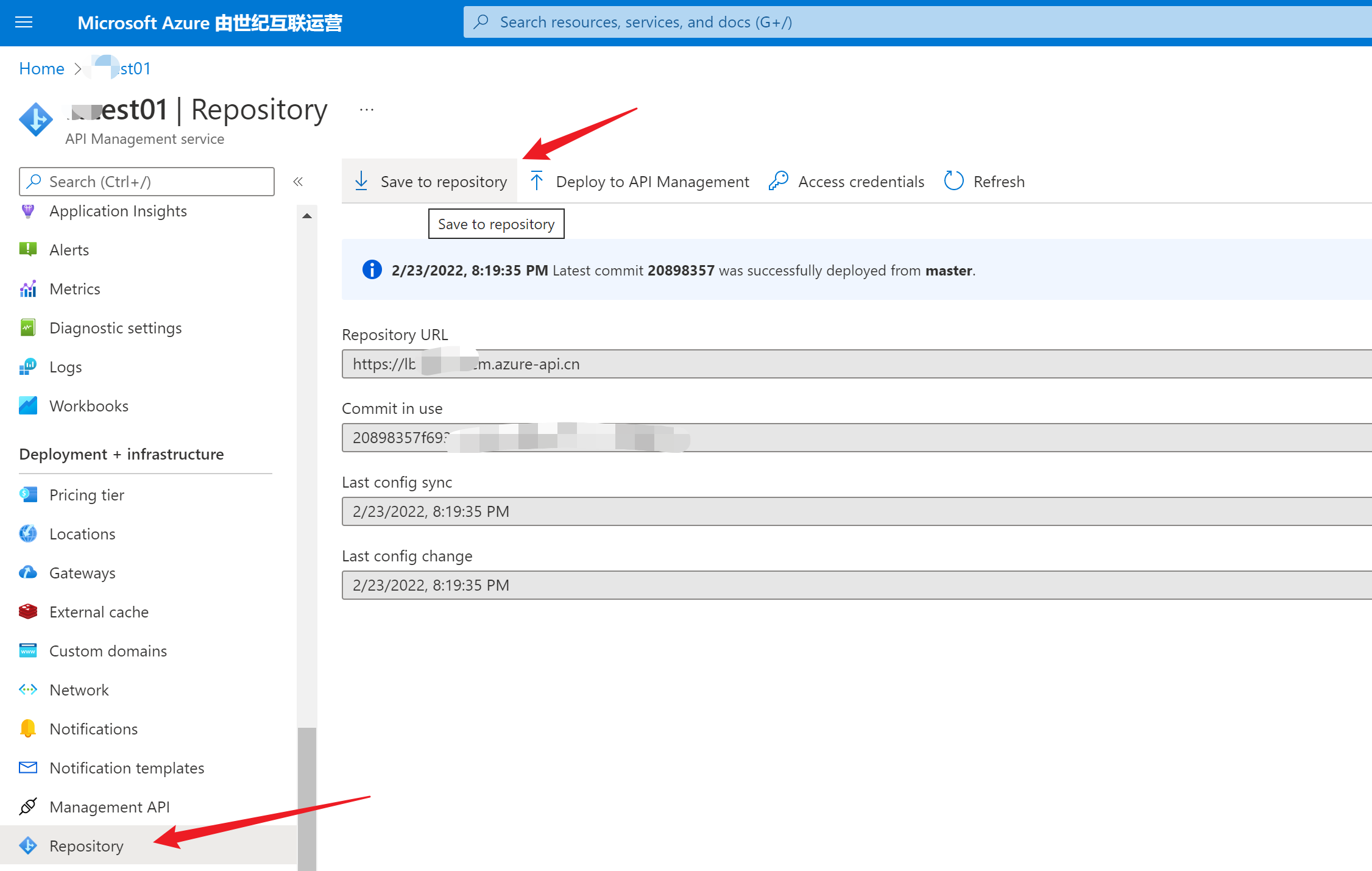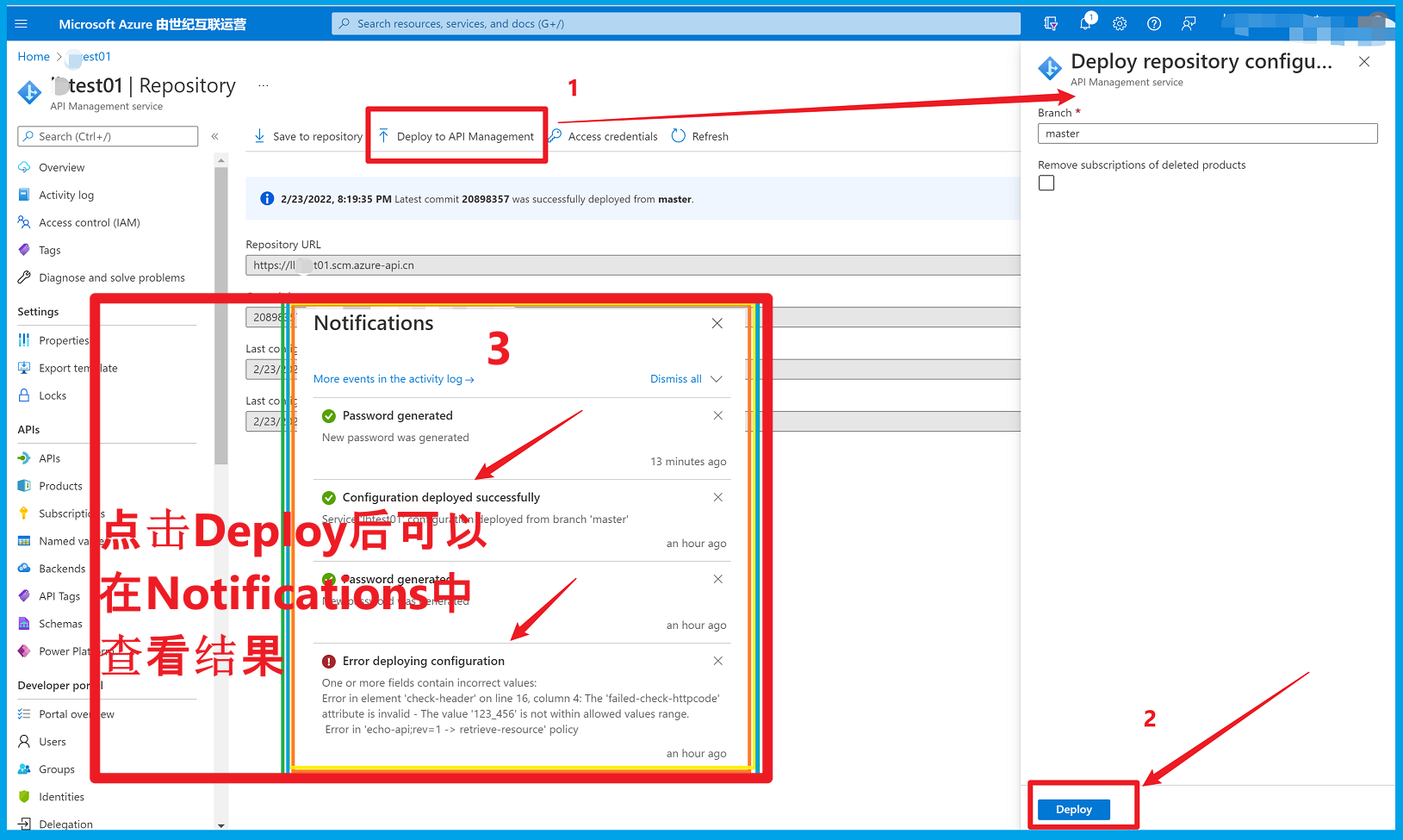 注:中国区的API为:https://management.chinacloudapi.cn/subscriptions//resourceGroups//providers/Microsoft.ApiManagement/service//tenant/configuration/deploy?api-version=2021-08-01