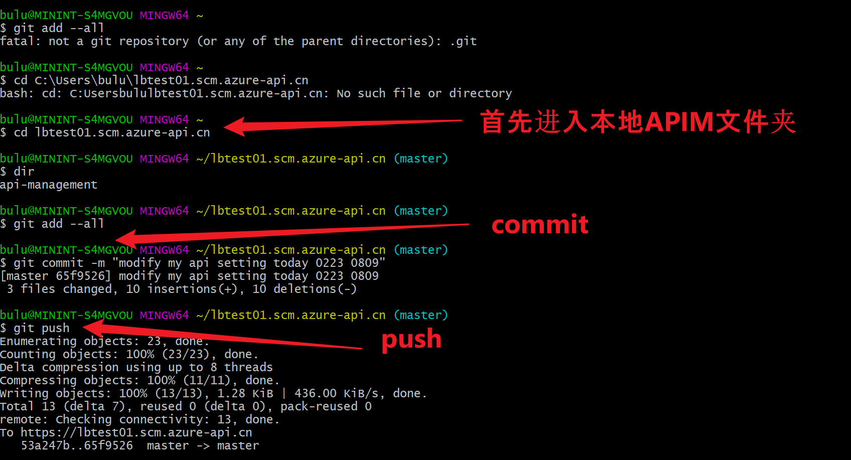 步骤四:将更改从本地存储库推送到APIM服务器存储器