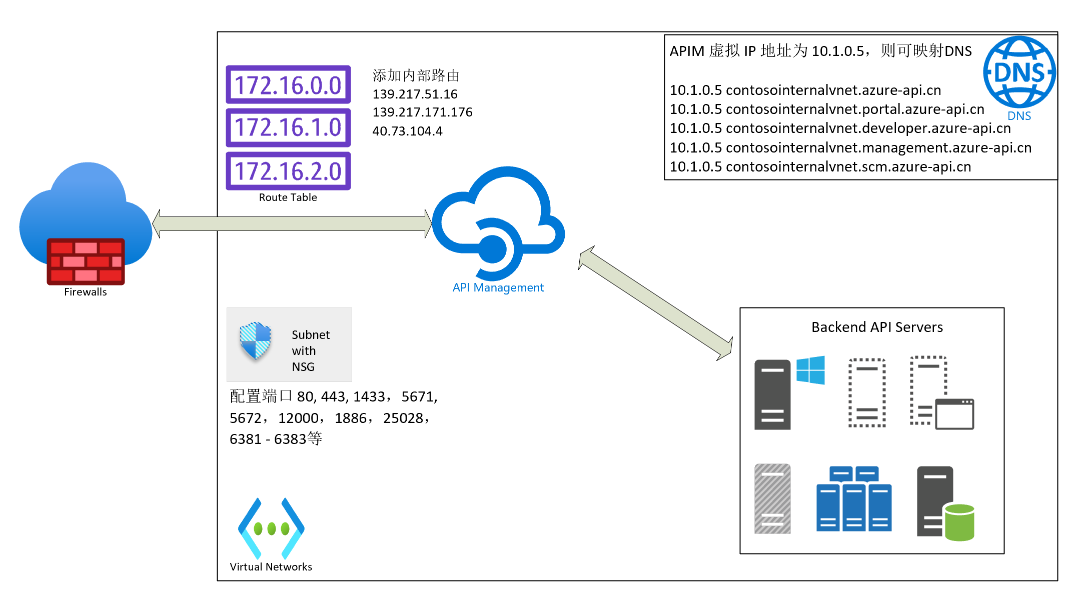 首先:以上的两个问题,都可以在" 如何将 Azure API 管理与虚拟网络配合使用:常见网络配置问题 "一文中找到答案。